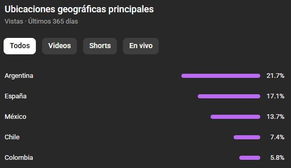 - +330.000 suscriptores en YouTube, ~650.000 visualizaciones en promedio mensual.